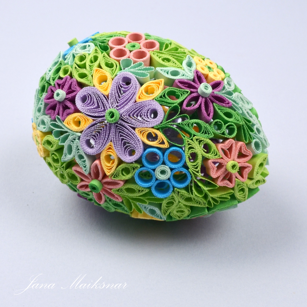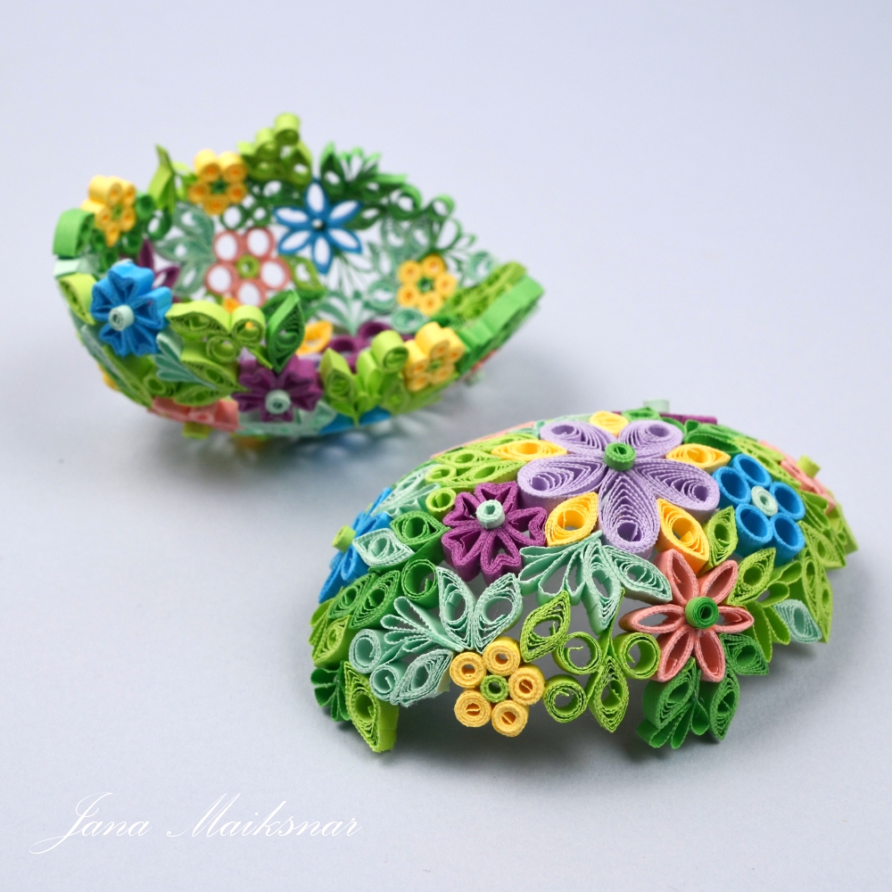 Pro tvorbu vajíčka lepte jednotlivé quillingové tvary stranou ke straně k sobě. Pro tvarování použijte polovinu plastového vajíčka (koupíte zde). Na plastové vajíčko se tvary nelepí, ale slouží pouze jako podklad. Nejdřív udělejte jednu polovinu, pak druhou a obě slepte dohromady.