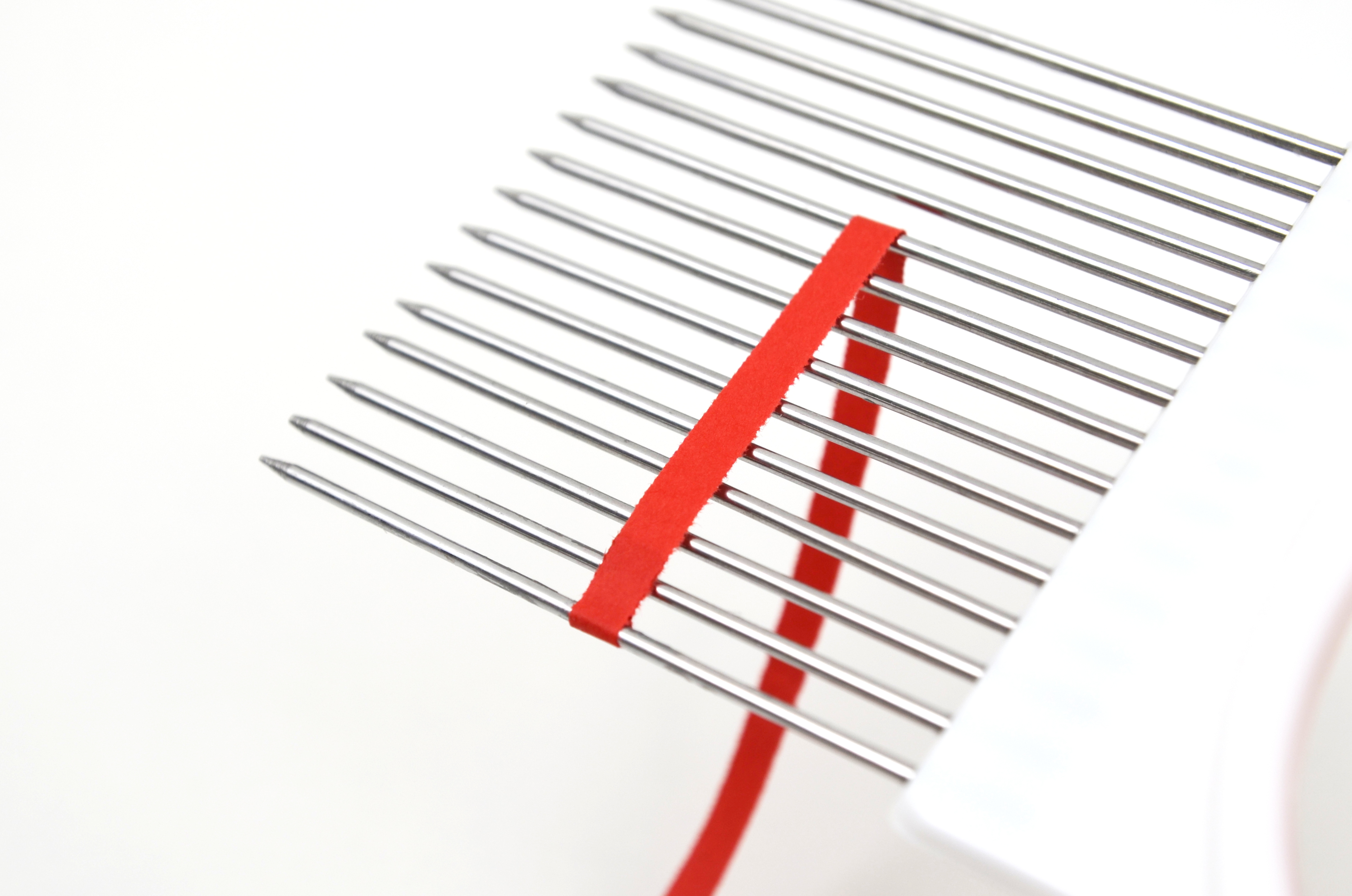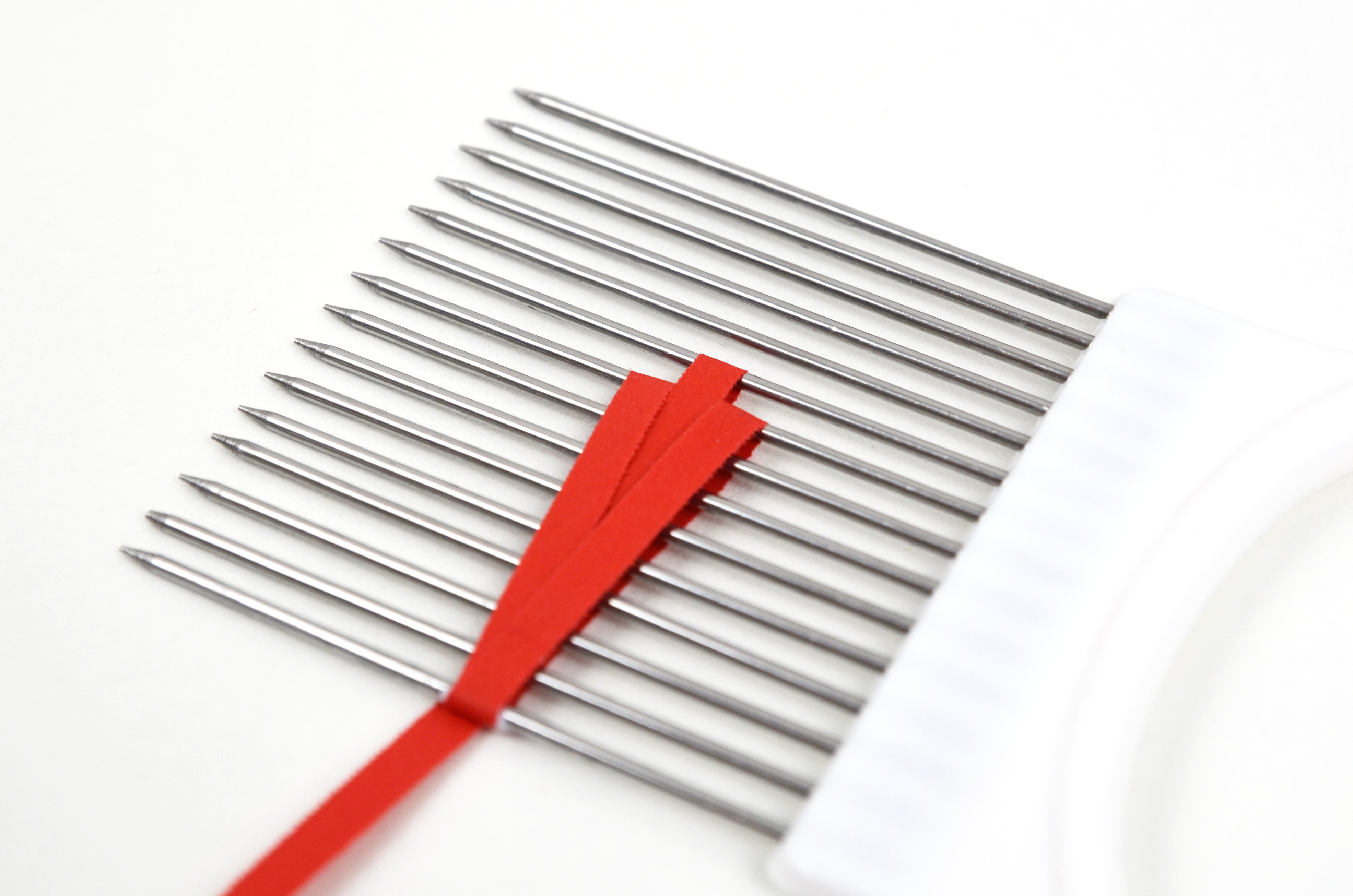 • Na proužek u prvního zubu kápněte trochu lepidla. To dělejte vždy, když se proužek při vyplétání ocitne u prvního zubu.