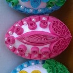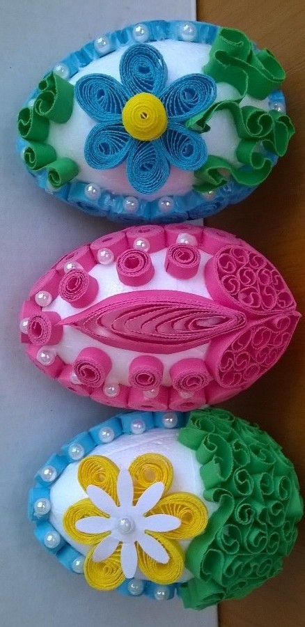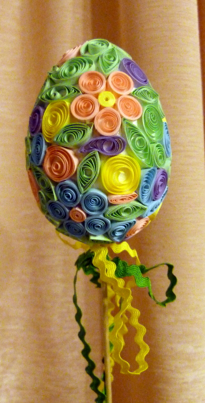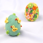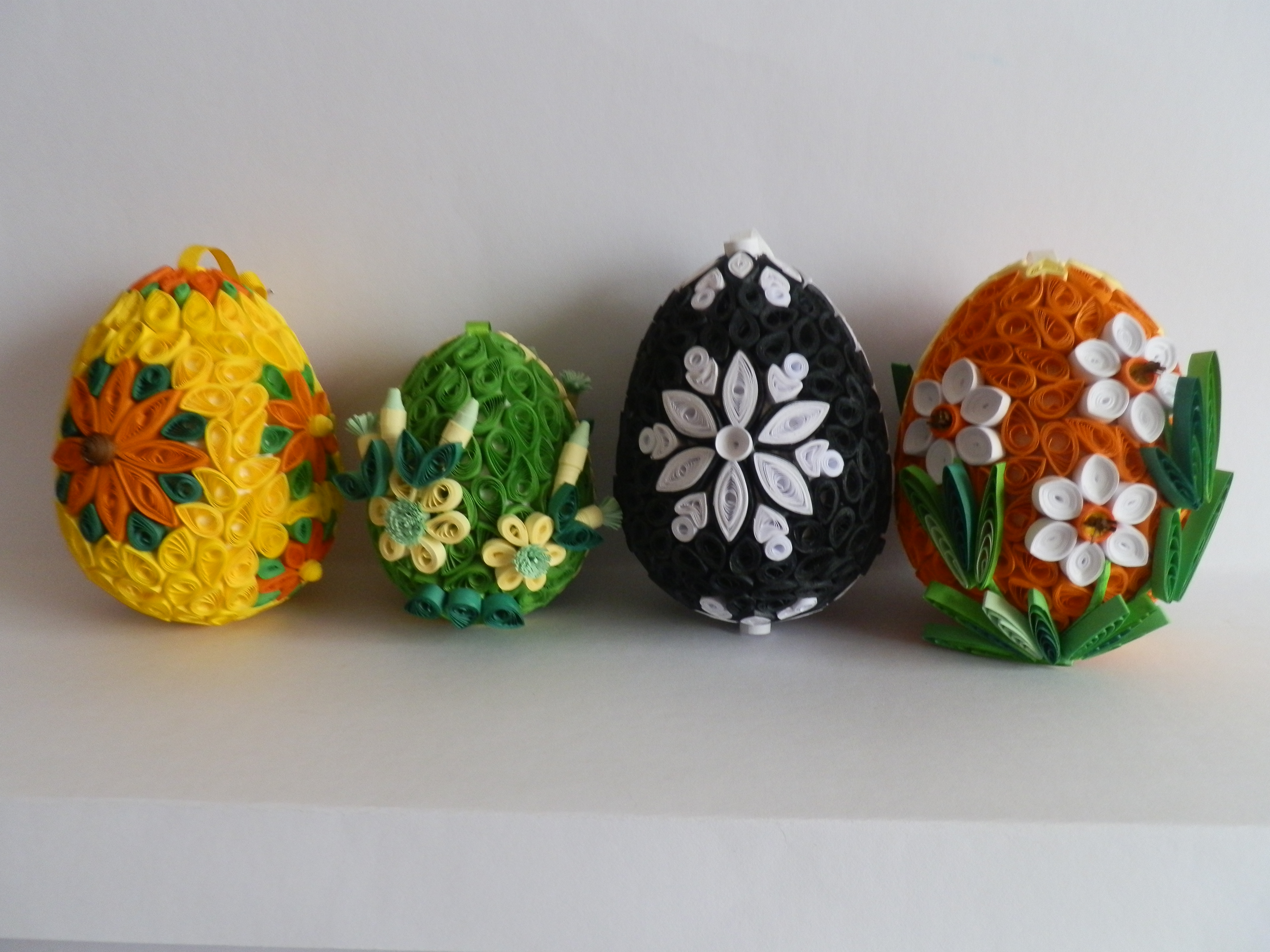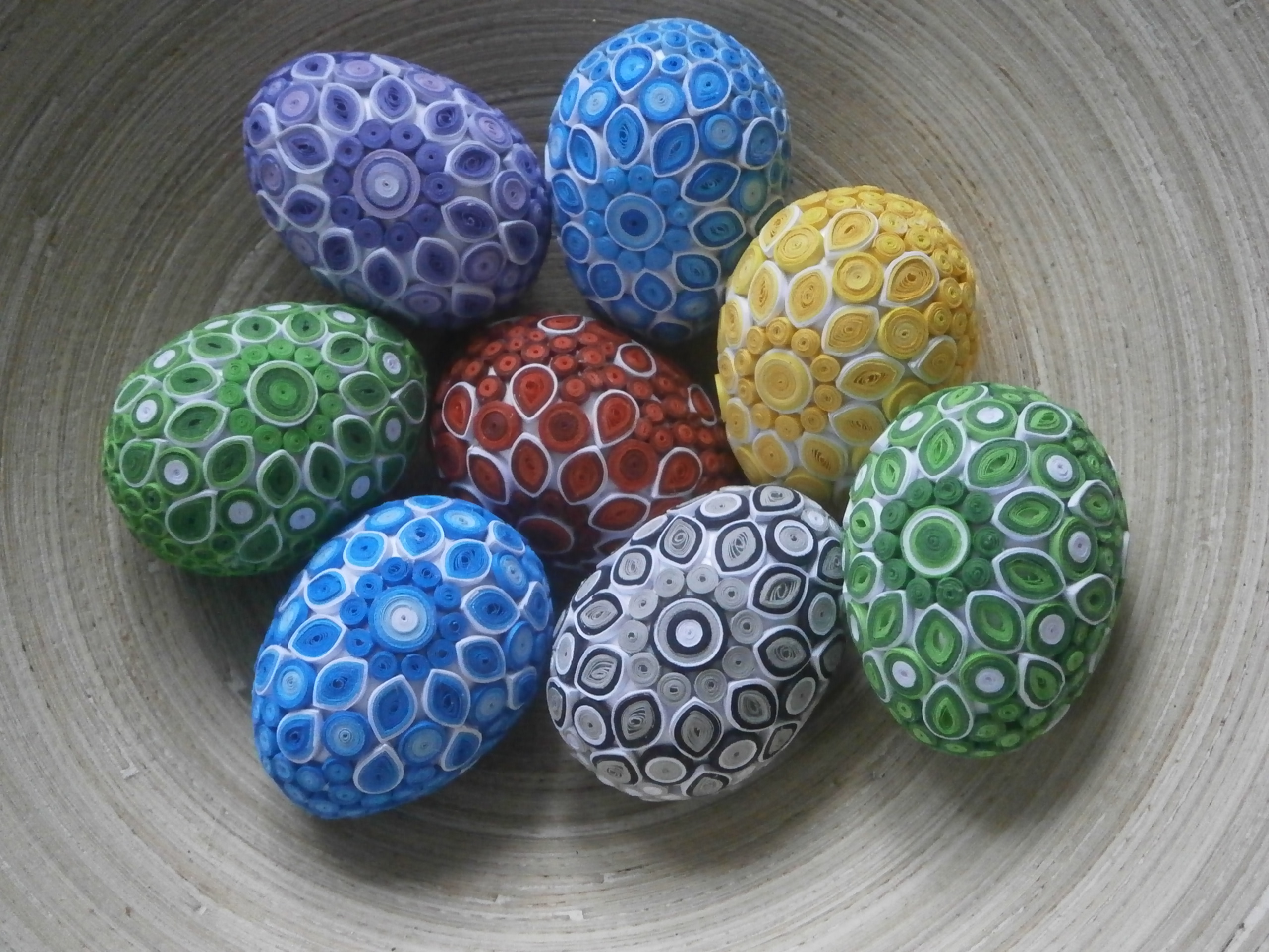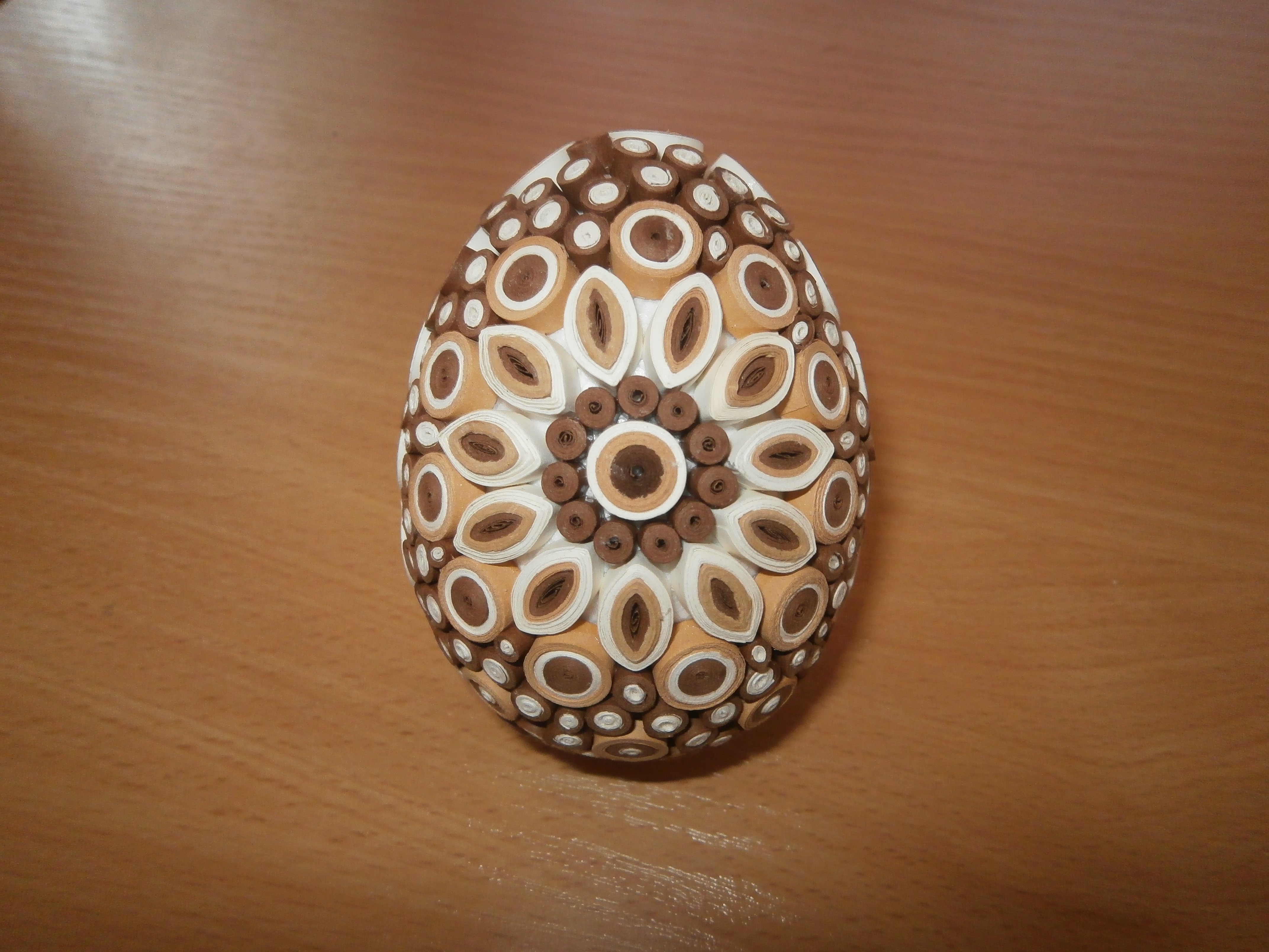 Velikonoční quillingová kraslice nemusí být jen dutá. Když použijete jako podklad poylystyrenové vajíčko, může to vypadat také velmi pěkně. Navíc je lepení na podklad jednodušší než formování vajíčka na plastové formě.