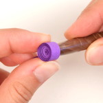 Posuňte střed trochu do kraje a zmáčkněte lístek do špičky i na druhém konci. Lístky můžete tvořit i menší, stačí použít jen jeden quillingový proužek. Stonek tulipánku je z různě dlouhých proužků. Záleží na velikosti krabičky, kterou chcete zdobit. Vždy ale oba konce párkrát zatočte na peru. Lepit se nemusí, nerozmotávají se. Tulipánek i další tvary opatrně potřete z rubové strany lepidlem.
