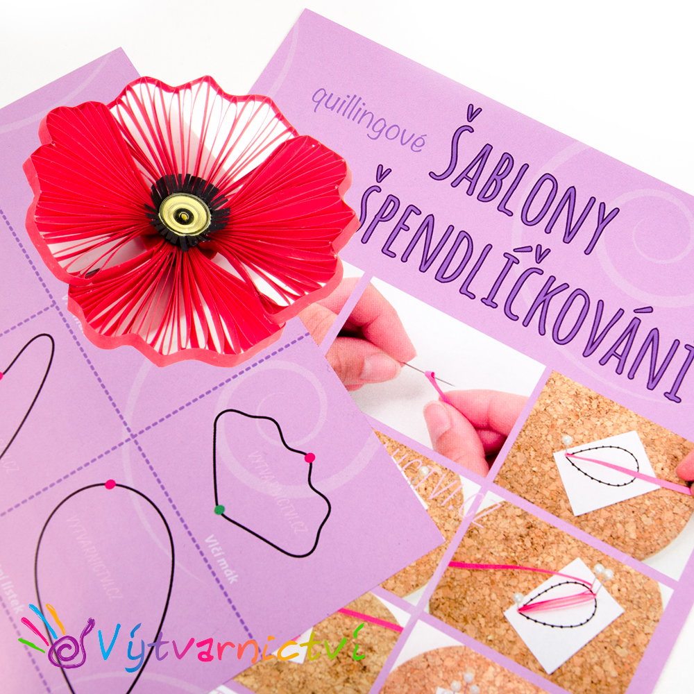 Vytvořte si v různých velikostech červený vlčí mák, pestrého motýlka, srdíčka nebo květinky díky šablonkám na quilling se špendlíky.